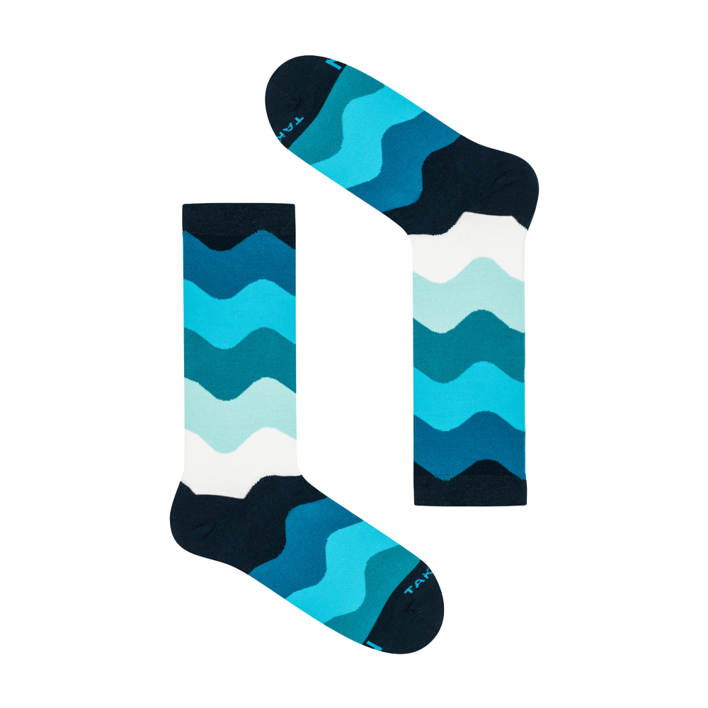 Kolorowe skarpety Falista 16m4 w niebieskie, granatowe i białe fale.